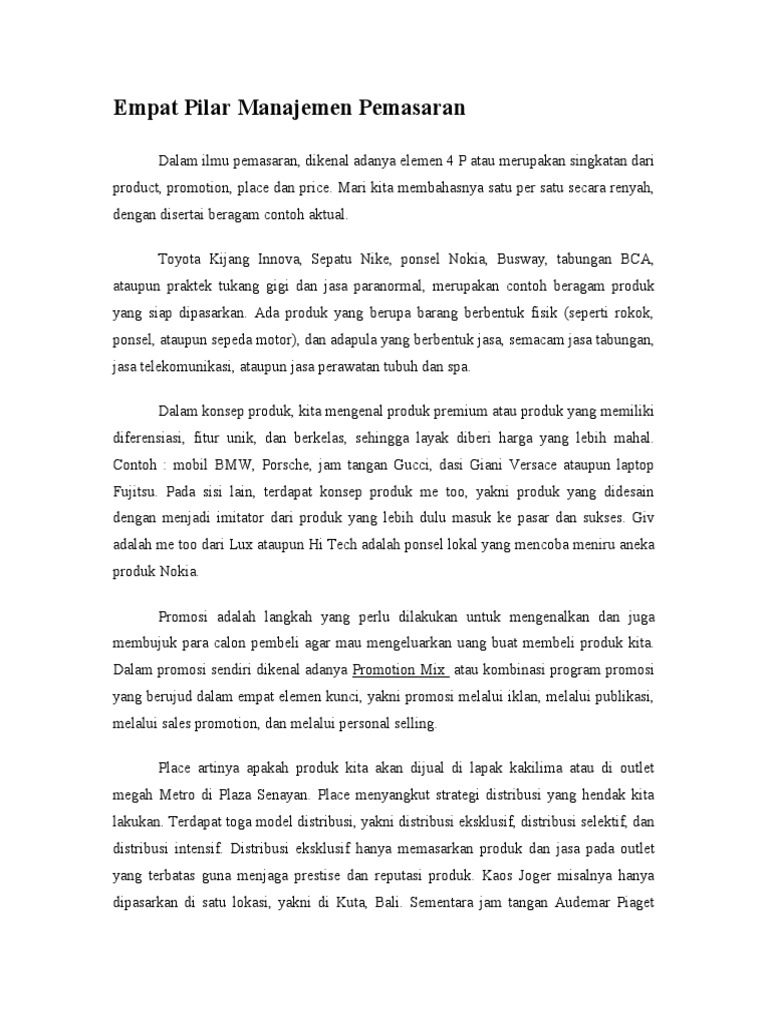 Pengertian strategi pemasaran secara umum strategi pemasaran produk merupakan ujung tombak pada suatu manajemen perusahaan yang berorientasi laba maupun pada setiap usaha. Pemasaran produk adalah salah satu hal penting yang ikut menentukan performa perusahaan. Pengertian, tujuan, fungsi, konsep, jenis & contoh terlengkap. Contoh makalah pemasaran produk, pemasaran jasa, pemasaran bisnis online untuk meningkatkan penjualan dan strategi manajemen contoh makalah pemasaran dari berbagai sumber bisa anda jadikan referensi.