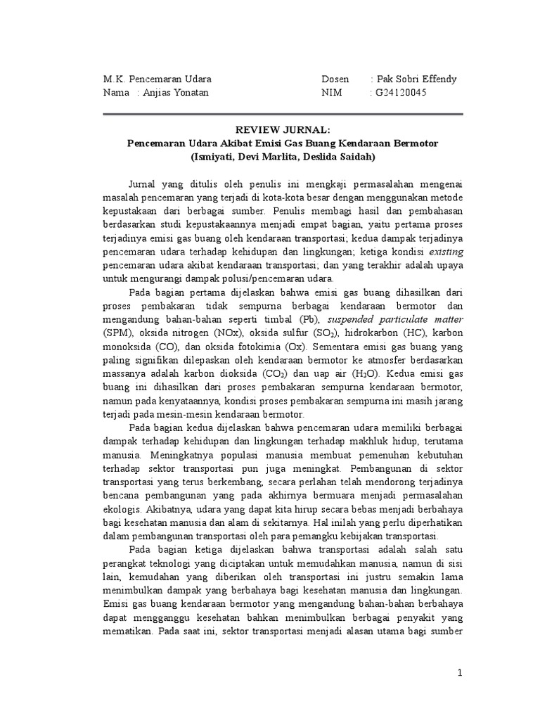 Pencemaran udara adalah adanya subtansi fisik, kimia ataupun biologi di atmosfer yang bila jumlahnya banyak maka dapat membahayakan kesehatan dan keberlangsungan makhluk hidup di bumi. An edition of pengaturan hukum internasional tentang pencemaran udara yang melintas batas negara (1996). Review 3 jurnal internasional ini diajukan untuk memenuhi tugas lanjutan msdm program studi manajemen fakultas ekonomi bisnis dan ilmu sosial universitas pelita bangsa bekasi 2020. Jurnal pencemaran udara efek rumah kaca efek rumah kaca, yang pertama kali diusulkan oleh joseph fourier pada 1824, merupakan proses pemanasan permukaan suatu benda langit (terutama planet atau satelit) yang disebabkan oleh komposisi dan keadaan atmosfernya.