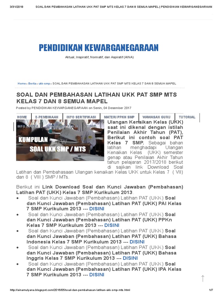 Download Kunci Jawaban Soal Ukk Smp Kelas 7