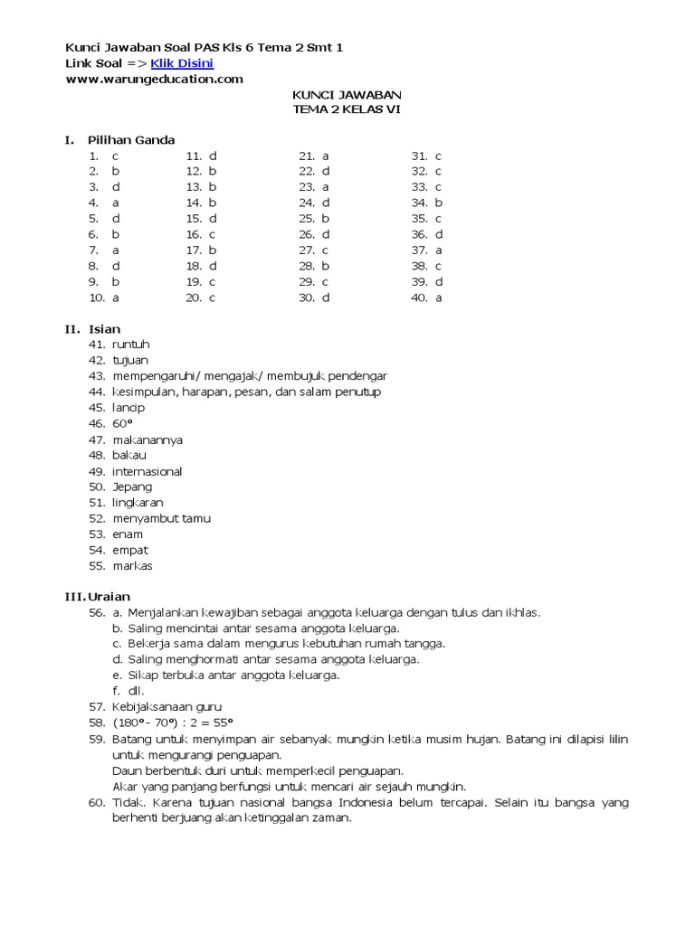 Background. Kunci jawaban pts tema 1 kelas vi pkn 1. Soal penilaian harian kelas 6 tema 1 subtema 1 terdiri atas 15 soal pilihan ganda dan 10 soal isan.
