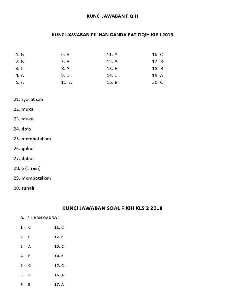 Download Soal Fiqih Kelas 5 Semester 1 Dan Kunci Jawaban Images