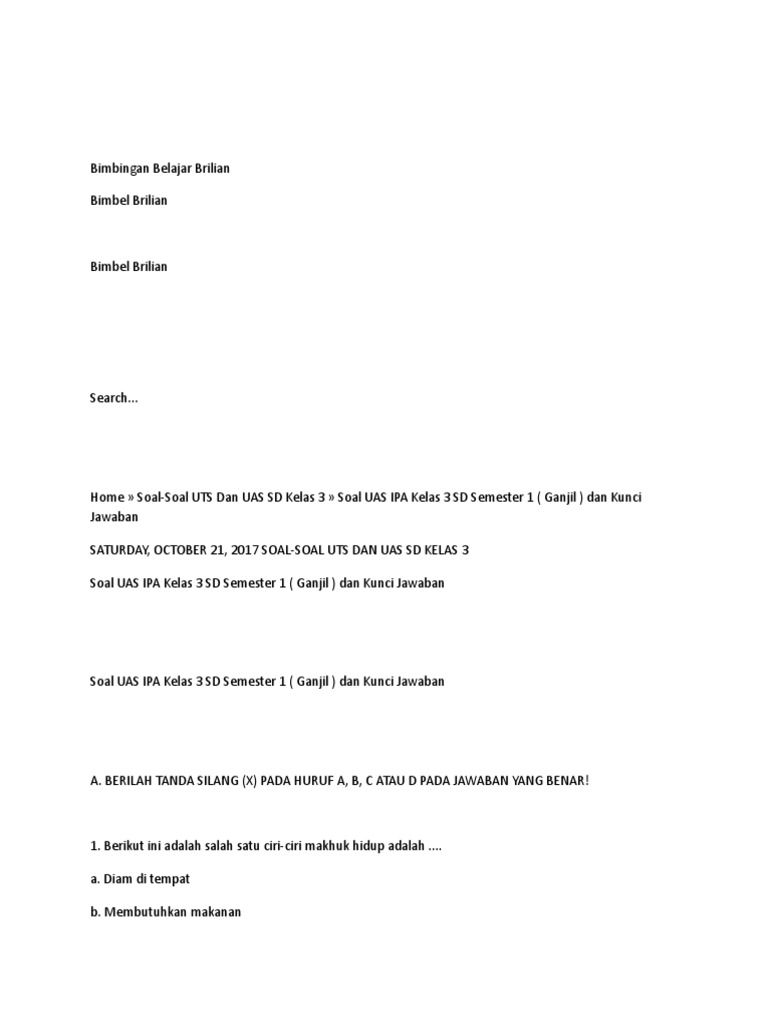 Download Soal Ipa Kelas 3 Sd Semester 1 Dan Kunci Jawaban PNG