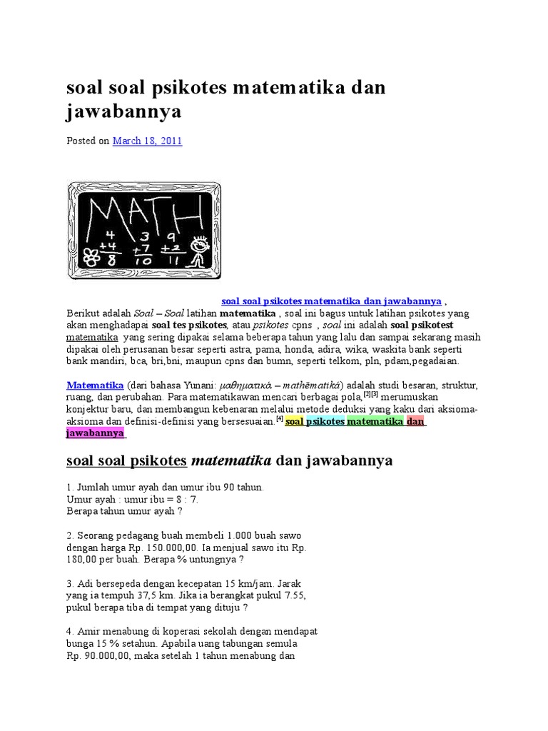 PNG. Anda sedang mencari contoh soal psikotes matematika dan jawabannya? Tes matematika yang sering muncul di psikotes.
