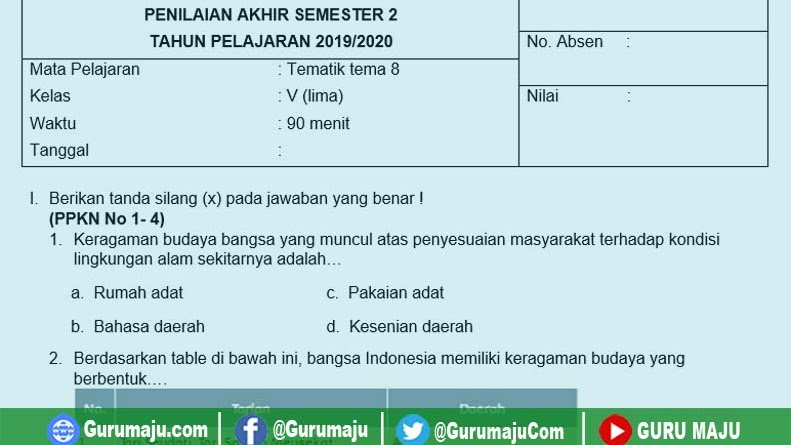 Pics. Soal pat tema 8 ini sudah dilengkapi dengan kunci jawaban. Soal ukk tematik kelas 5.