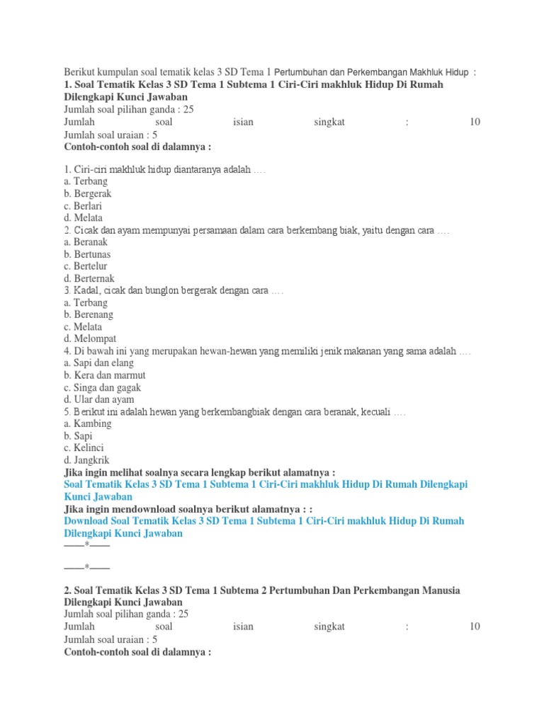 Soal kelas 3 tema 1. Kunci jawaban tematik halaman 58. Soal tematik kelas 3 sd tema 1 subtema 2 pertumbuhan dan. Soal pts/uts semester 1 kelas 5 tema 1 organ gerak hewan dan manusia mupel pkn, bahasa indonesia dan kunci jawaban.